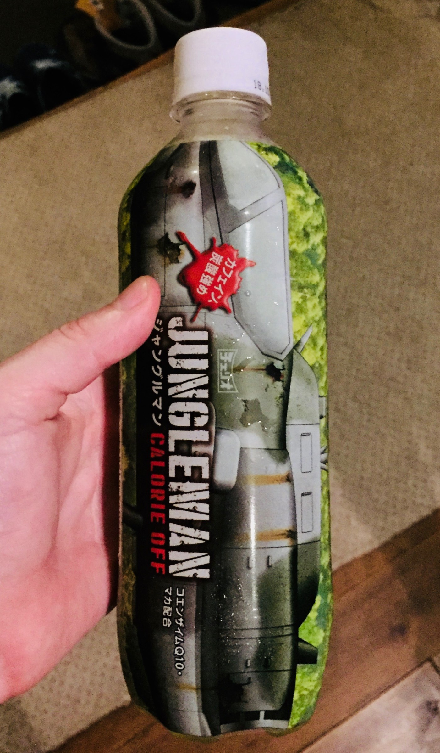 The “Jungle Man” bottle screams masculinity, with the name in the spray-painted in a font that can only be described as “tank” standing out confidently in front of the camouflage green body of a Vietnam-era helicopter. There is no question that the prime demographic of this soda is twelve-year-old boys and military aviation enthusiasts – but there is something so appealing in the over-the-top imagery of Jungle Man that even I couldn’t resist. I almost expected For What It’s Worthto start playing as I opened the bottle, or the trailer to Ken Burns’ Vietnam– at least something to tie in to the military theme. As it was, the soda did not taste like a dirty little war, or a rich man’s war, or a poor man’s fight, – but like crushed smarties in soda water. A point in favor of the 12-year-old demographic theory. I’ll be honest, it wasn’t great, but for 100 yen and enough change for the washer and dryer, I was happy to drink it – even if both my parents went to Berkeley.