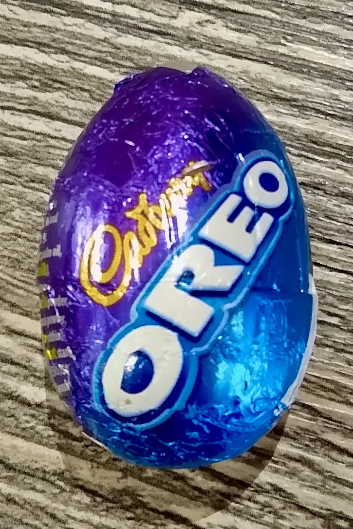 And since moving to the UK, I’ve added two or three Oreo Crème eggs to my kit. In part, because they are delicious – a cookies and crème filling in a chocolate eggshell – and because they hold up very well in the laundry-machine environment of my handbag. They are a handy snack when I feel my hanger levels rising (which is fairly often). But more importantly, they are a nostalgic, comforting food to many of my UK classmates. Whenever I pull one out of my bag, people look at me as if I have performed a magic trick – that I’ve conjured up a little bit of childhood in the middle of a lecture. In fact, they are so delighted to receive one that they forget that they’ve been talking to me for an hour about something I do not care about. Or that they have been completely unhelpful in the group project because they didn’t eat lunch. Or that they need to get over that breakup because IT’S BEEN SIX MONTHS AND I’M TIRED OF HEARING ABOUT IT EVERY DAY, CYNTHIA.
